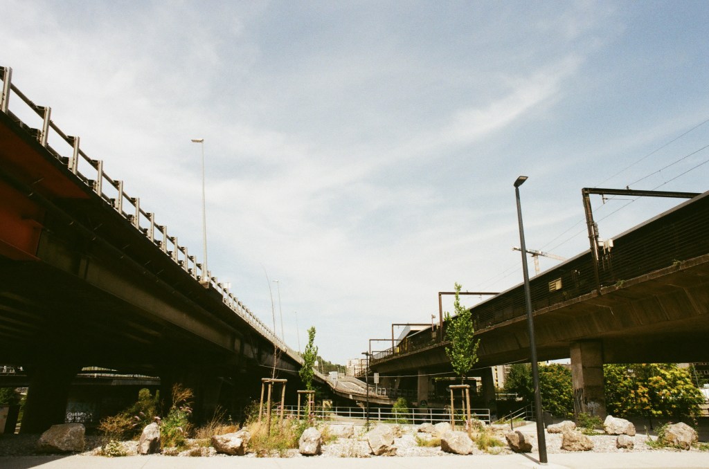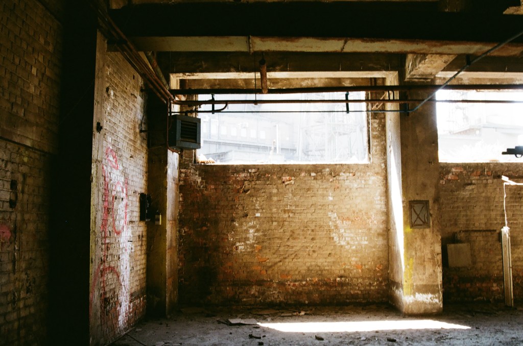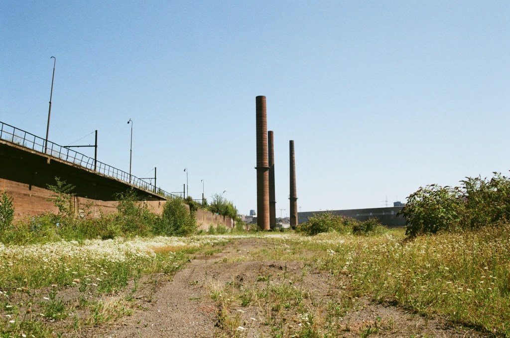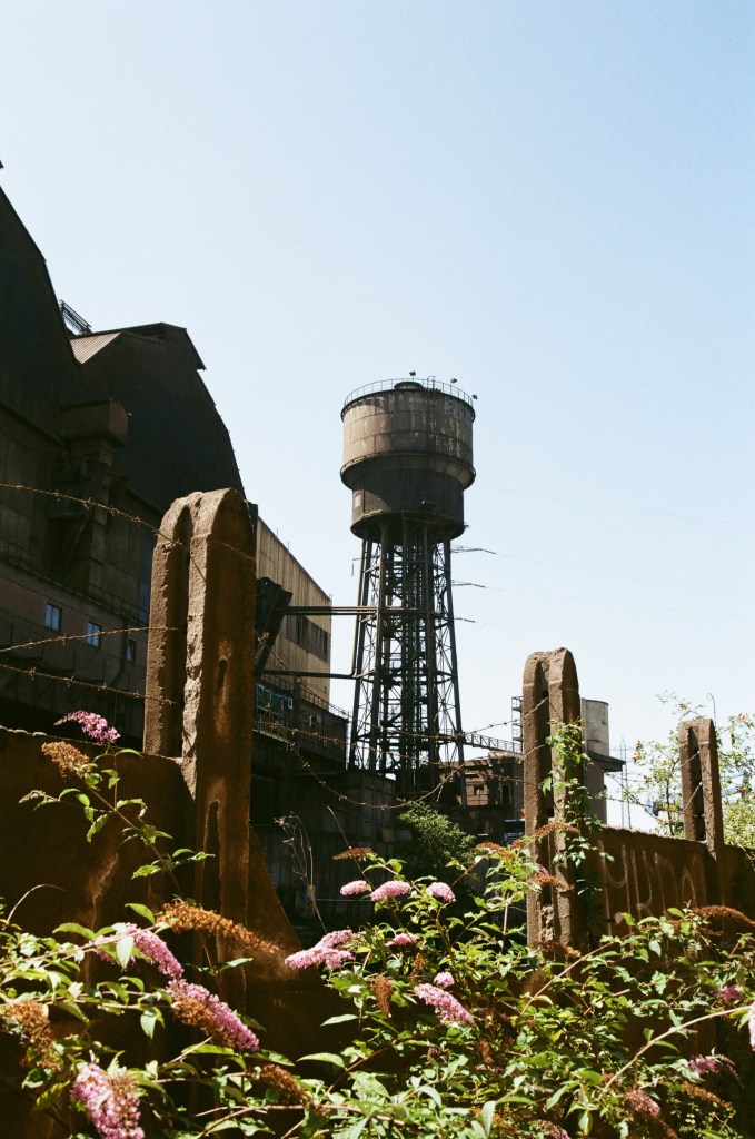 Where day and night are embraced by the imposing industrial buildings.
